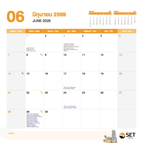 Page 13 - ปฏิทิน 2569 ตลาดหลักทรัพย์แห่งประเทศไทย