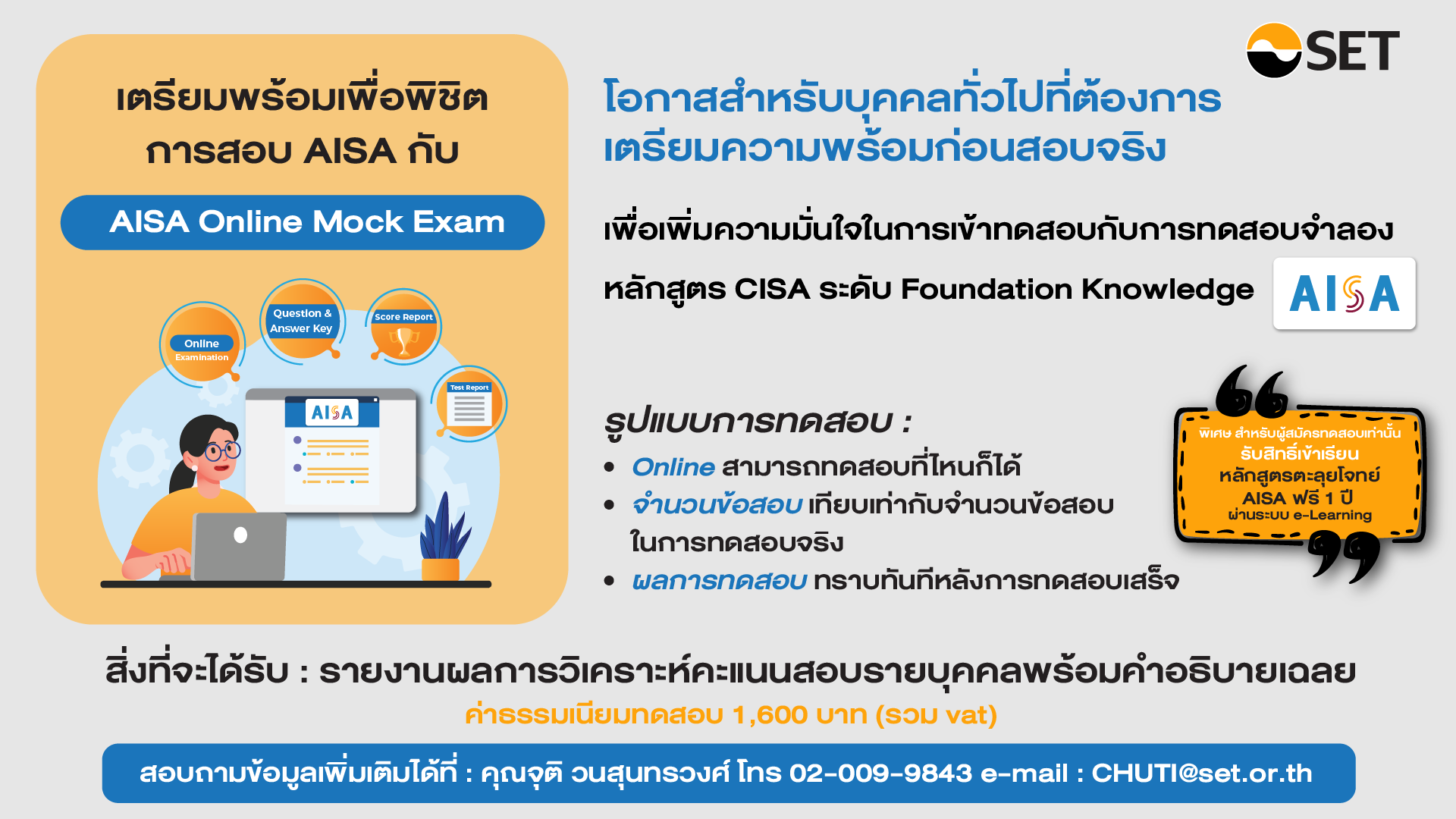 เฉพาะผู้ซื้อตำรา หรือ e-Book AISA / CISA ครบชุดเท่านั้น