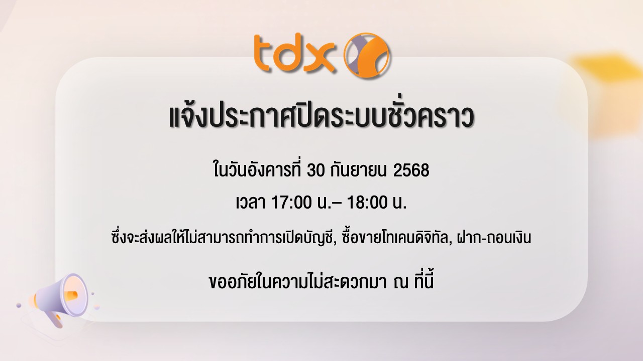 TDX | โอกาสลงทุนสินทรัพย์รูปแบบใหม่ในโลกดิจิทัล TDX เป็นบริษัทในกลุ่มตลาดหลักทรัพย์ฯ ที่ให้บริการเป็น ตลาดรอง หรือบริษัทที่ได้รับใบอนุญาตให้ประกอบธุรกิจศูนย์ซื้อขายโทเคนดิจิทัล ซึ่งอยู่ภายใต้การกำกับดูแลของ สำนักงาน ก.ล.ต. ลงทุน Digital Token กับ TDX • ซื้อขายได้ทั้ง Investment token และ Utility token • ลงทุนพร้อมบริการช่วยเหลือจากทีม TDX แบบ 24/7 |